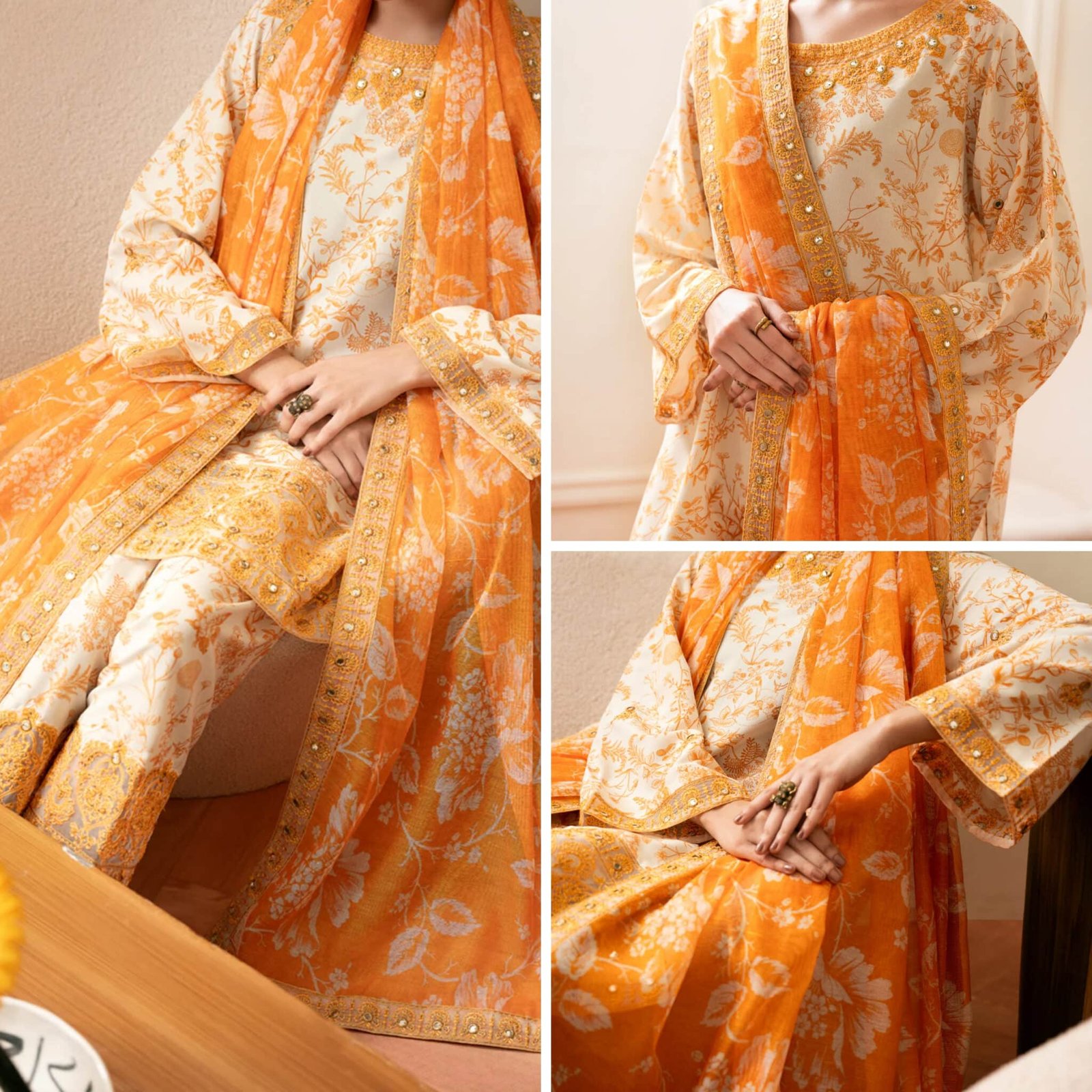 3 Pcs Cream Silk Lawn (Stitched)